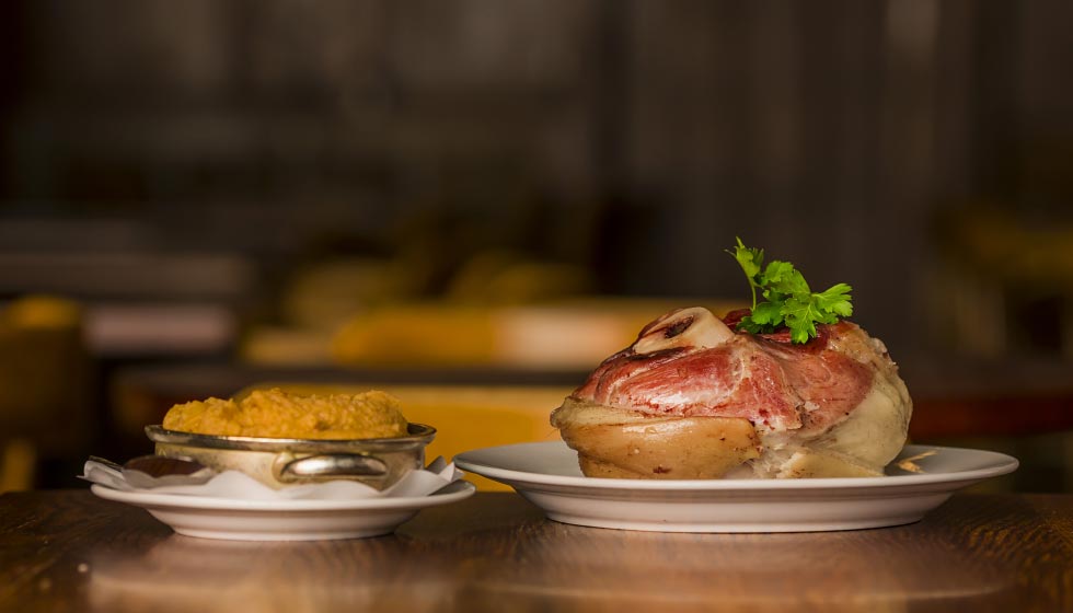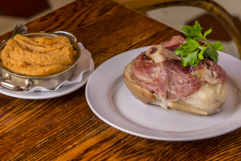 Fläsklägg med rotmos och tre sorters senap
