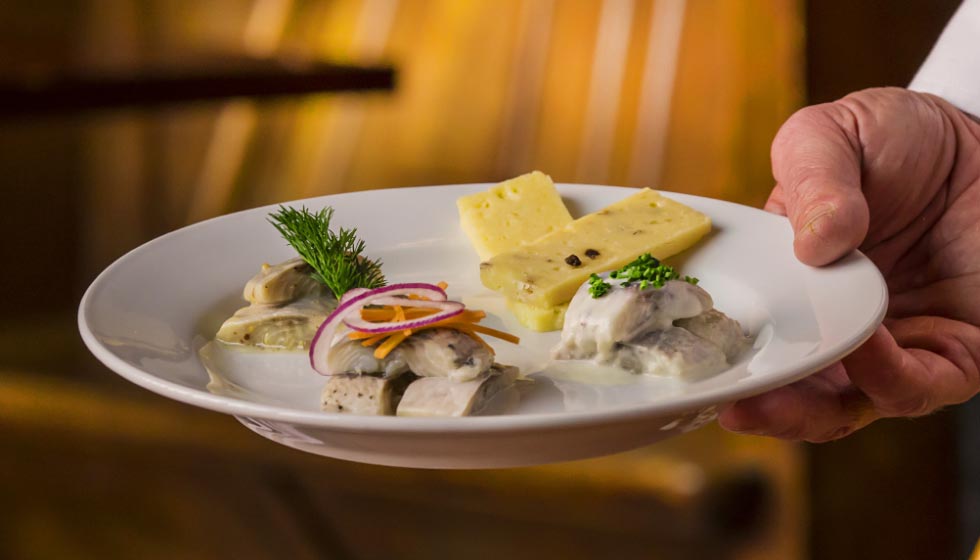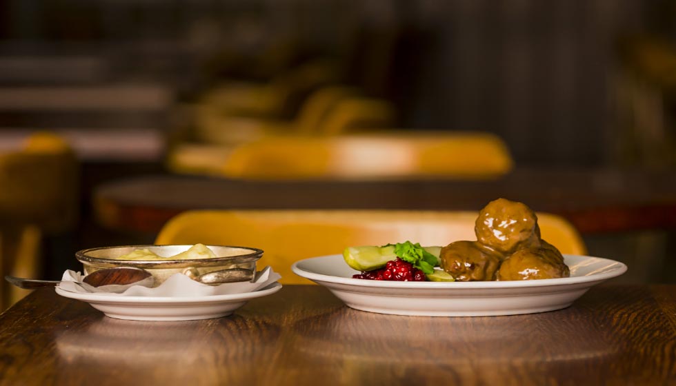 Under takmålningarna i den stora ölhallen svävar 110 år av matminnen. Golfbollsstora köttbullar, strömming, sill och småländsk ostkaka, kalvlever, rabarberpaj och fläsklägg med rotmos. Här regerar gräddsåsen, det brynta smöret och gubbröran.